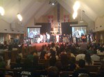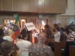 The initial processional of the flags represented the 30 national people groups gathered for the celebration. That’s right: Pastors and people from 30 different nationalities serve under the umbrella of LINC. Diane carried the USA placard which followed the Christian flag. One ethnic group after another followed. It was so very powerful because all were present to worship Jesus Christ, the King of kings and Lord of lords. We sang in Spanish and English, heard Korean music, listened to Scripture and prayers in Hindi, Ethiopian, Spanish, Chinese, and English. The sermon was delivered by Pastor David Kim who spoke in English and Spanish to the more than 300 people present.