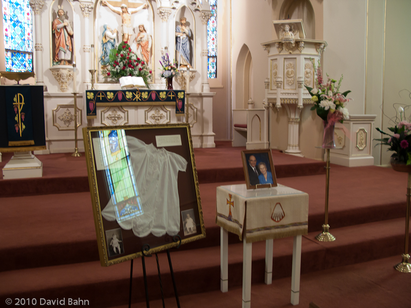 They had on display at the memorial service two significant things: Her baptismal certificate – colorful and beautifully handwritten; and a shadow box that Diane and her sisters put together as a gift to her mom containing the baptismal gown Jenny wore (first) and which was worn by several family members (two of our sons) with a list of those who wore it and when.
