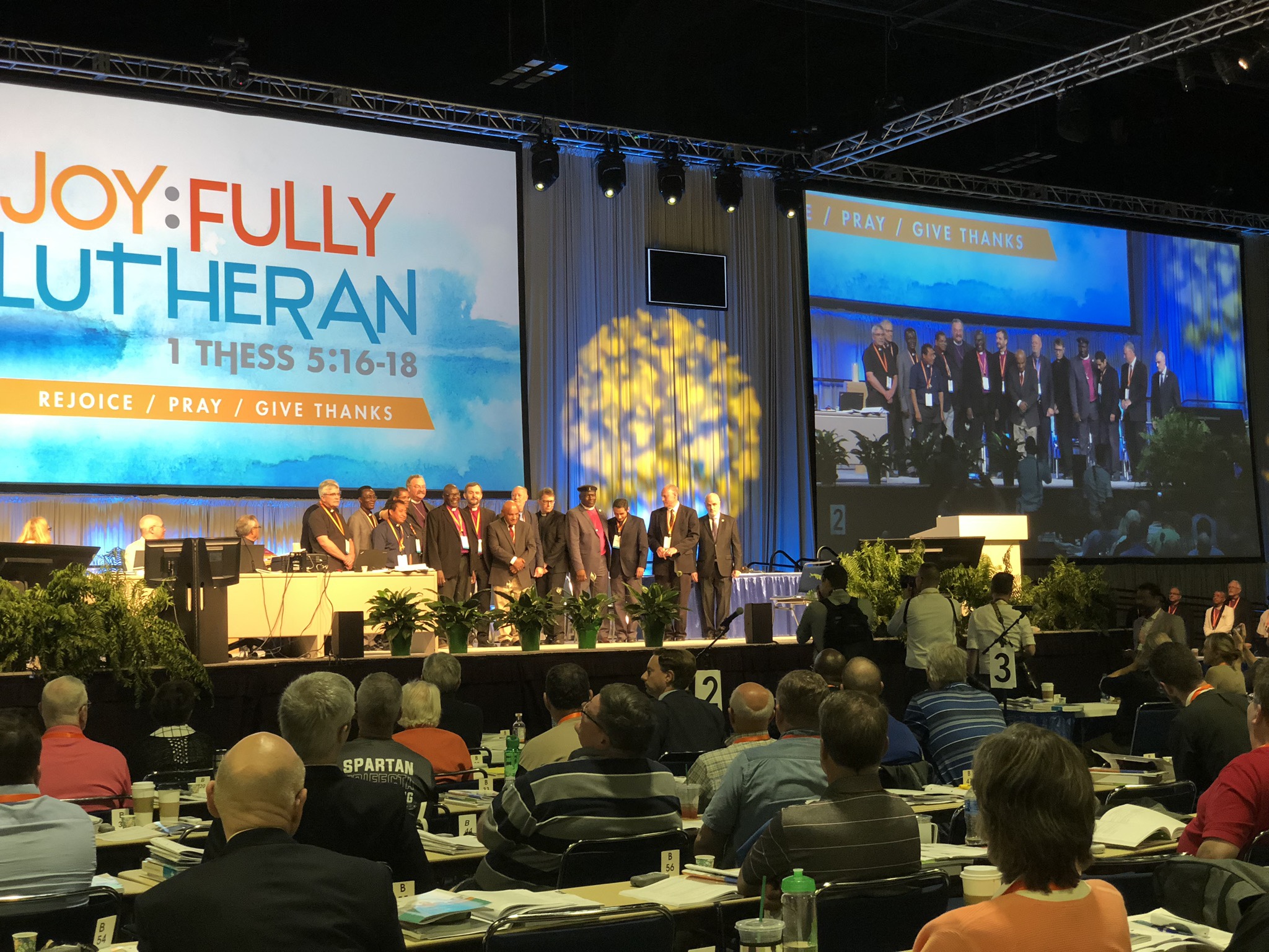 We had the opportunity to recognize several partner churches and other churches today at the LCMS National Convention. It was a great moment to see all the bishops and church leaders from around the world up on the stage. Pastors and church leaders from Russia, Finland, Germany, Portugal, Guatemala, Uganda, Ethiopia, Tanzania and Madagascar were present – just to name a few. I believe our warm reception of them was encouraging. We stood, applauded, and then sang a hymn in celebration of our work together.
